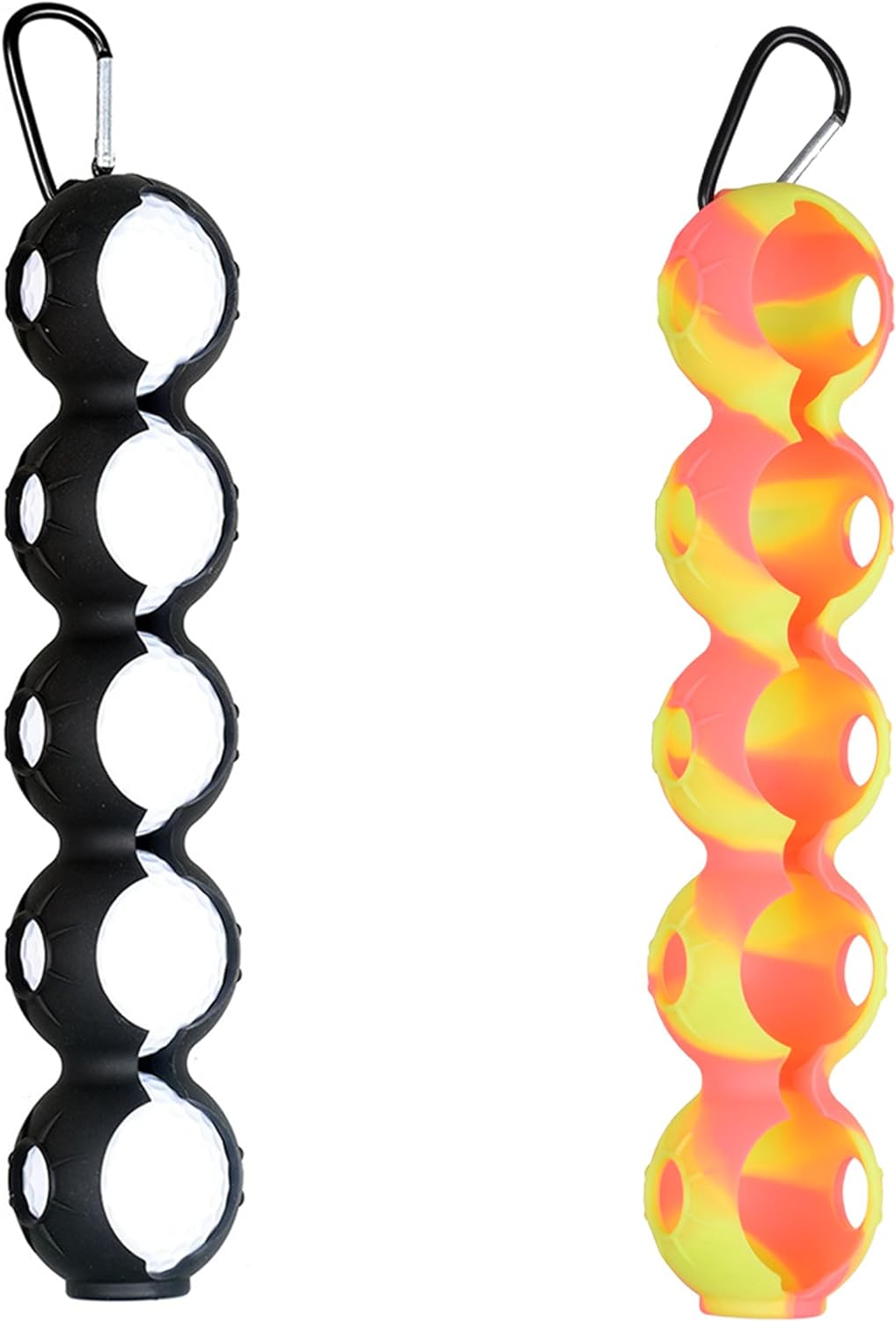 2 PCS Golf Ball Holder, Each Hold 5 Golf Balls Silicone Pouch Golf Ball Case Portable Golf Ball Carry Bag Easy Attachment to Golf Bag Golf Accessories Gift for Man Woman Black and Colorful